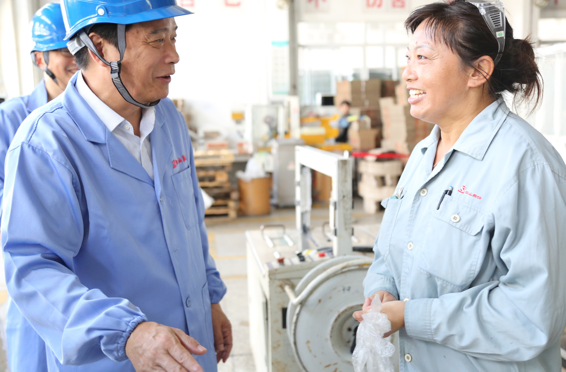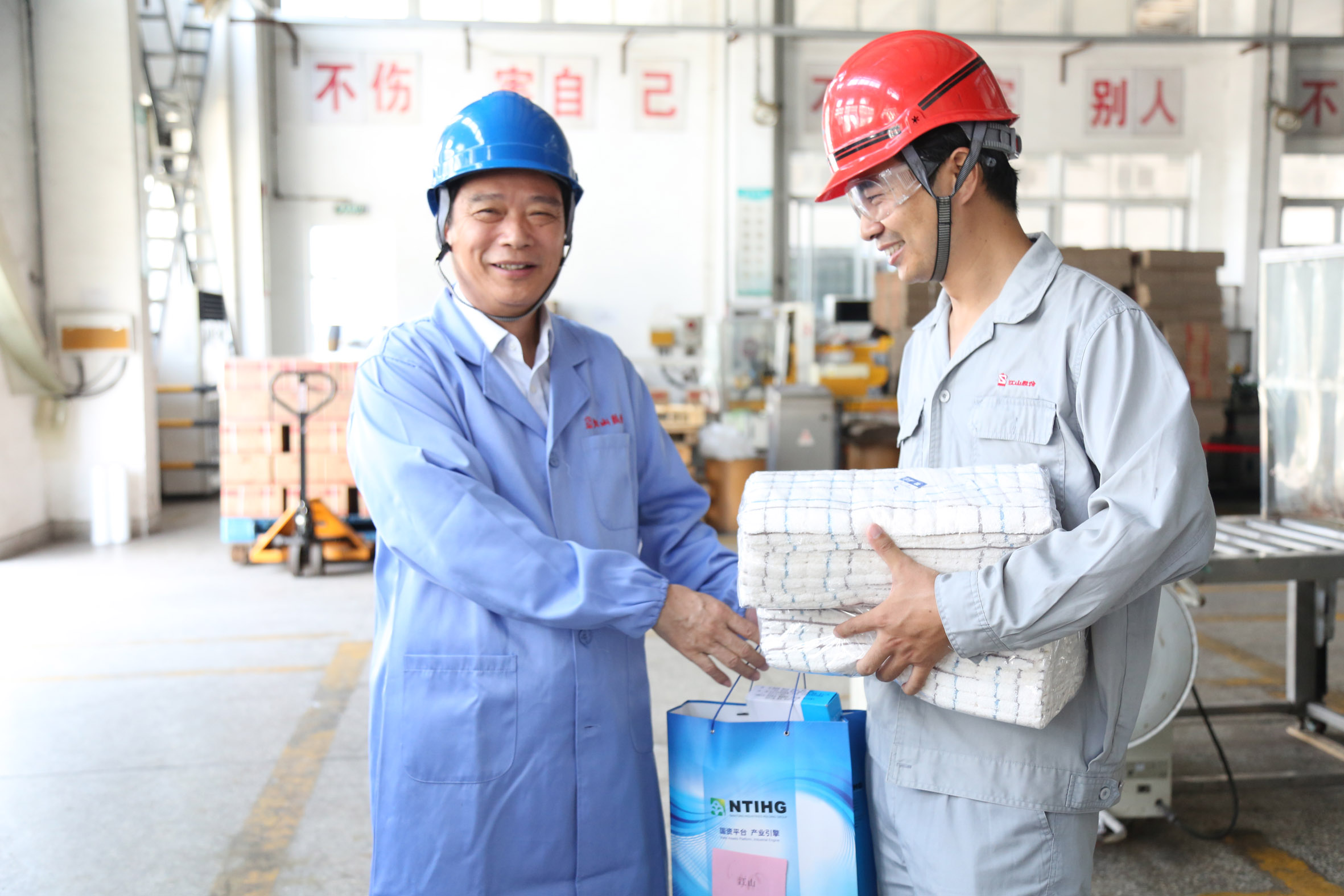 在制剂包装厂房内,杜董事长与包装线员工亲切交谈,高度赞扬公司员工不畏高温、坚守一线的精神,叮嘱大家在高温季节更要注意安全生产,做好防暑降温工作,并向大家送上了高温慰问品。