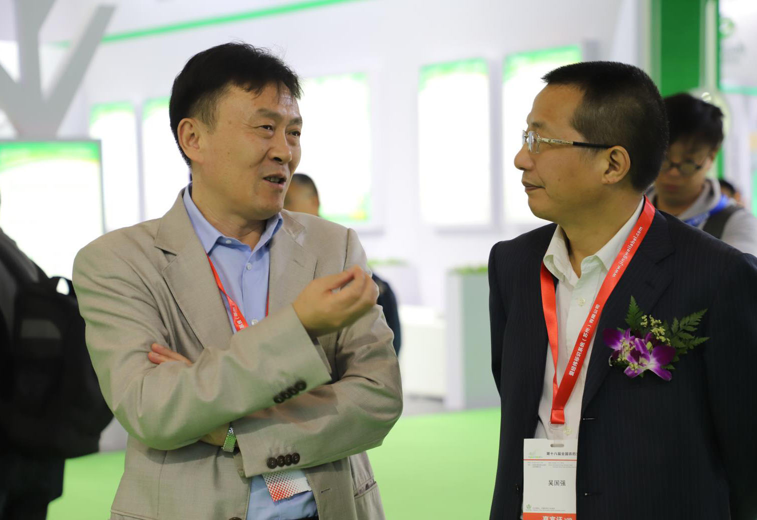 展台上薛总与农业部农药检定所党委书记吴国强亲切交谈