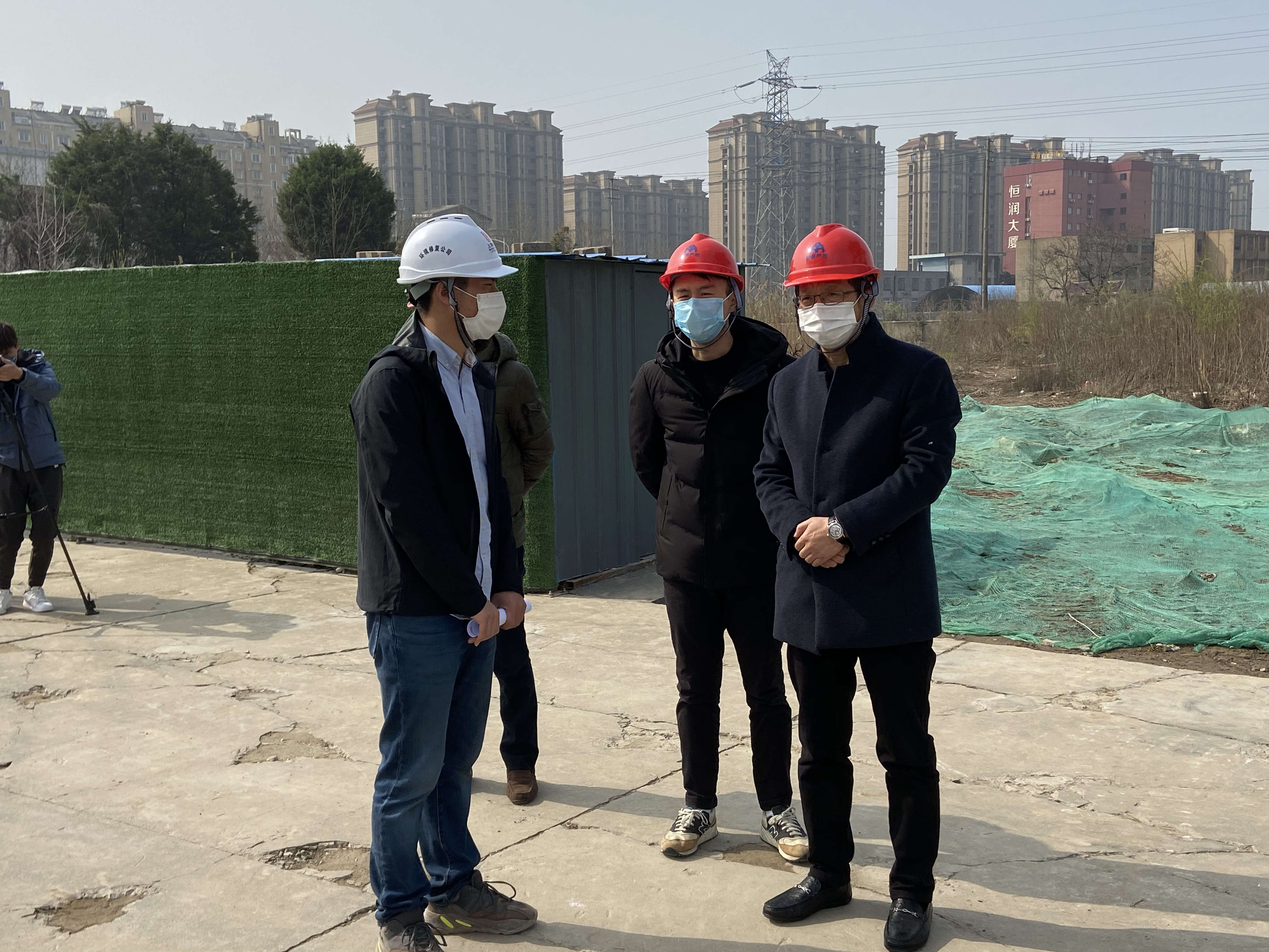 3月11日上午,爱游戏首页党委委员、副总经理沈百安带队现场检查原万达锅炉(北)地块土壤修复工地复工情况并检查工地疫情防控相关工作。