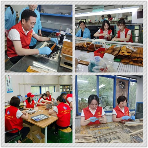 6月25日下午,国泰公司党员干部走进投资企业江苏芯锐传感科技有限公司车间生产一线,开展“进企业,促生产,送服务”活动。在芯锐公司负责人的陪同下,国泰公司党员干部在直观深刻了解了生产流程工艺后,积极投身到剥线、贴板条、包胶、包装、切花、划片、检测等医疗传感器手工制作岗位,融入了群众,提高了产量。